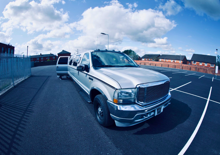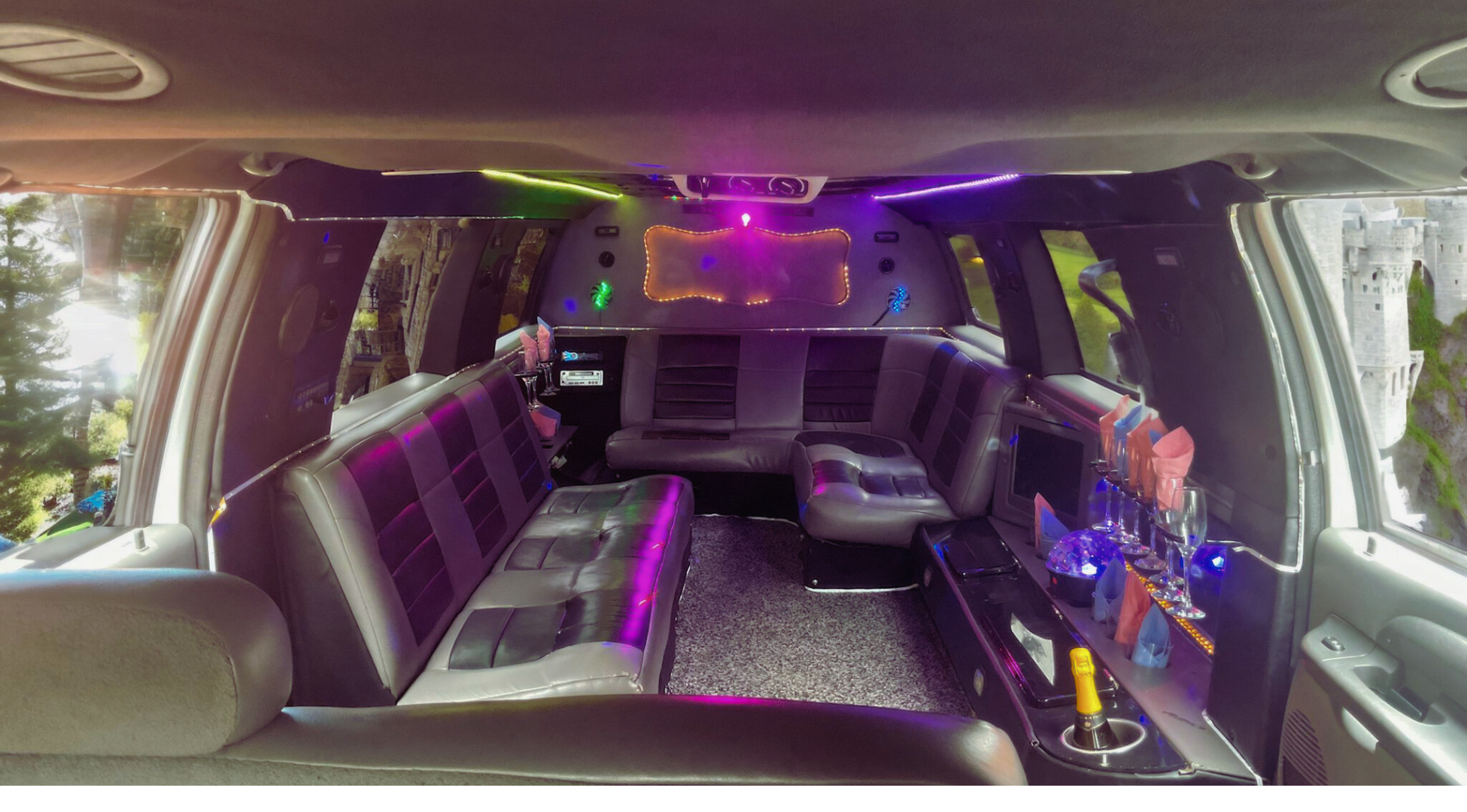 👑Discover the luxury of our Ford Excursion 4x4 Limousine, a combination of modern design, comfort, and versatility. This roomy limo seats up to 8 passengers, perfect for group events and social travel, with premium leather seating.